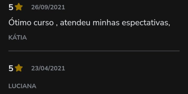 Você terá acesso ao curso por 1 ano e caso não se sinta satisfeito com sua compra, você pode fazer o cancelamento em até 7 dias.